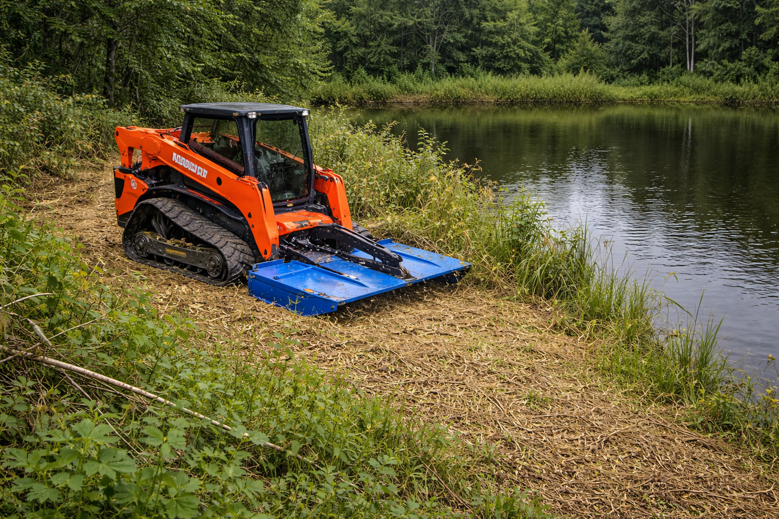 Let us clean up those hard to cut pond and creek edges with our long reach brush hog attachment.